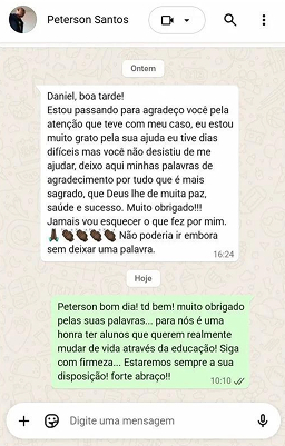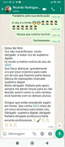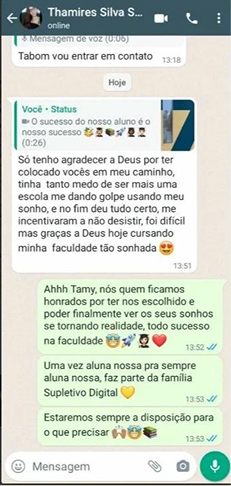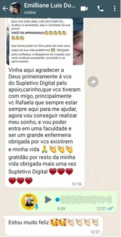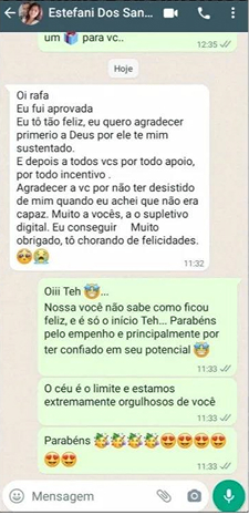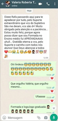 Mensagens enviadas por alunos após serem aprovados no supletivo.